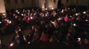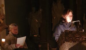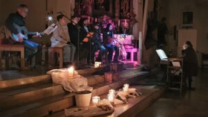 Die Ministranten halfen beim Verteilen des Friedenslichtes an die Besucher und trugen durch Paula Klug die Fürbitten vor, die mit Wunderkerzen als Mut-Funken abgerundet wurden.